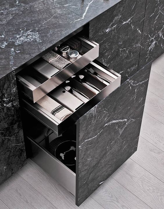 A Vipp kitchen is a modular concept. Designed as a series of building blocks; there are four types of modules: island, island with seating, wall and tall modules.